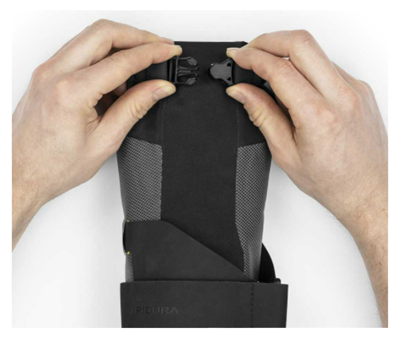 包身帶有 Apidura 標誌性的反光印刷設計,確保您夜間騎行的安全。