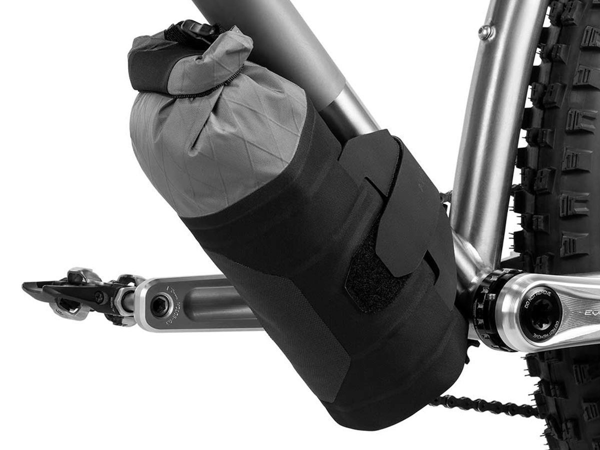 Backcountry 下管包牢固地固定在下管和類似直徑的管上,為長途旅程騎手提供多功能且可壓縮的存儲空間。 它有足夠的容量容納一個 1L 的水瓶。