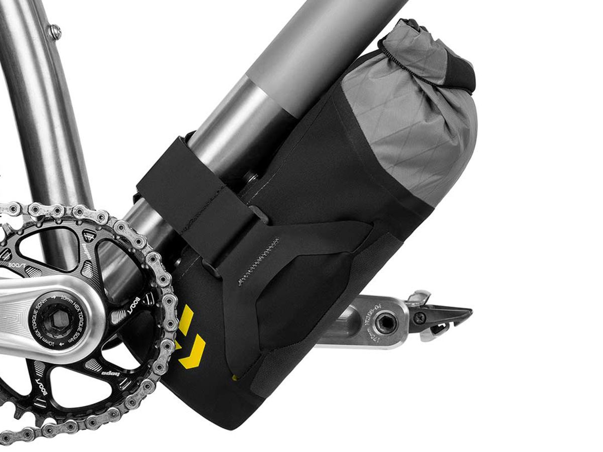 Apidura Backcountry 全防水下管配件包可牢固地固定在下管和類似直徑的管上,為長途旅程騎手提供多功能且可壓縮的存儲空間。