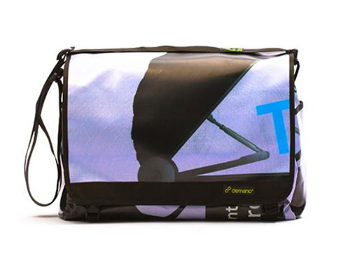 12. Demano Diagonal Mar Brompton 兩用大型郵差包-文字(藍)