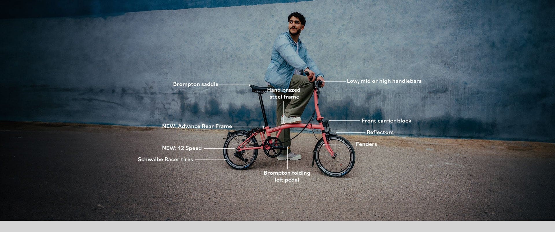 C Line 最新推出的 12 速版本,完美補齊了原有的 2 速與 6 速選擇。首次亮相於 P Line 車型的 Brompton 獨特 12 速系統,經過精密設計,為騎士帶來更豐富的變速選擇與更廣的齒比範圍。在全新 Advance 後三角架構的加持下,不僅提升了騎乘表現,還讓經典款的便攜性更上一層樓。半折疊狀態下,可輕鬆推行與轉向,輕鬆穿梭於車站、建築大廳,帶來無與倫比的靈活體驗。