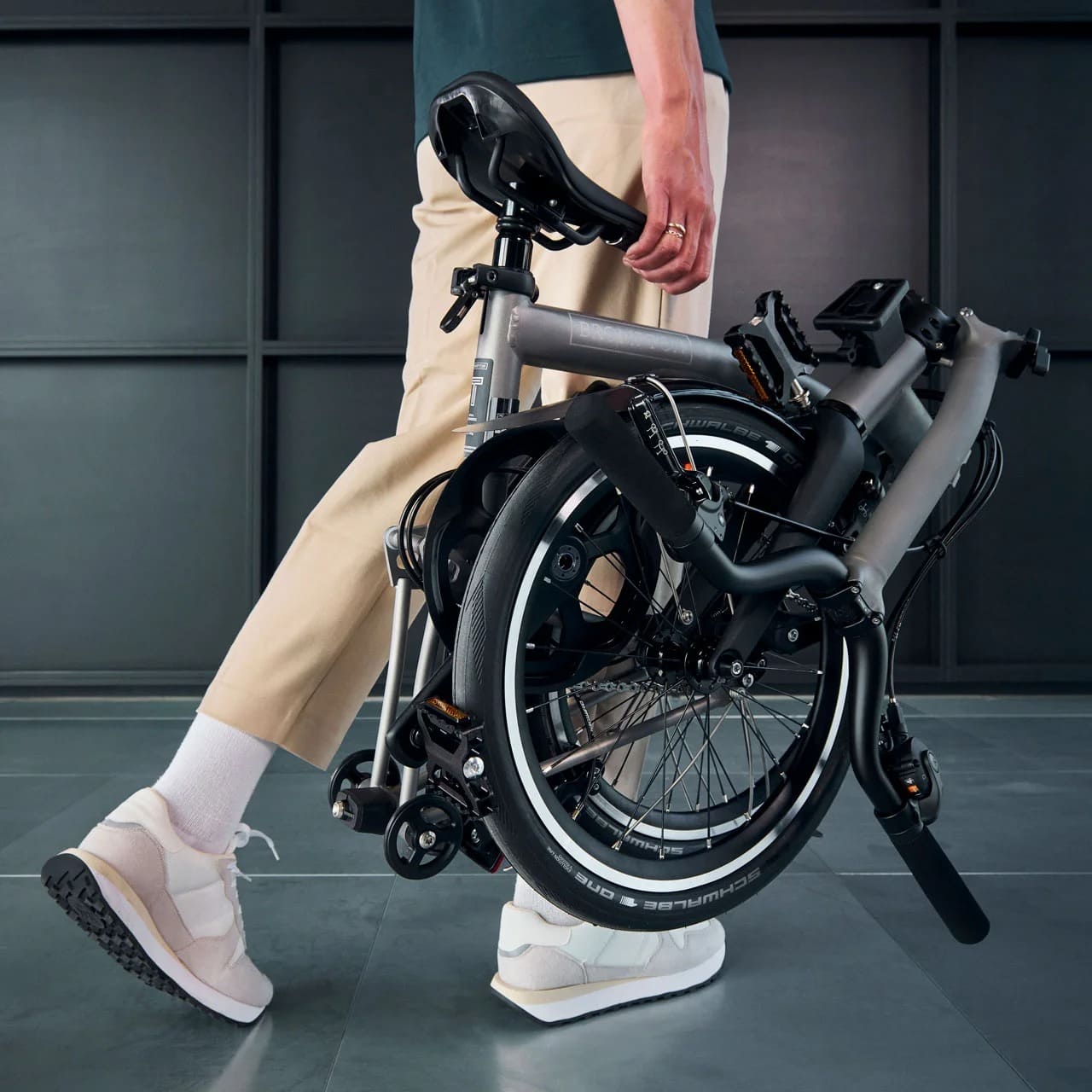 全新的超輕量鈦合金車架,搭配超過 150 個專為減重而開發的零組件。三年來反覆的材質選擇與嚴苛測試,造就了這次的突破。除了折疊,一切都煥然一新。