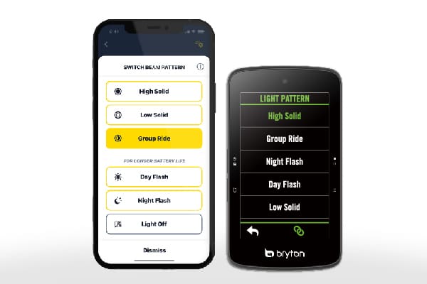 Bryton GARDIA R300L 配備有多種燈光模式支援你全時段的騎乘需求,讓你無論在何種情境下都能被看見,包含恆亮、恆亮微光、日間閃爍、夜間閃爍、關閉燈光,和團騎模式,此外,搭配相容的自行車碼錶後更能夠直接於碼錶螢幕上調整燈光模式。