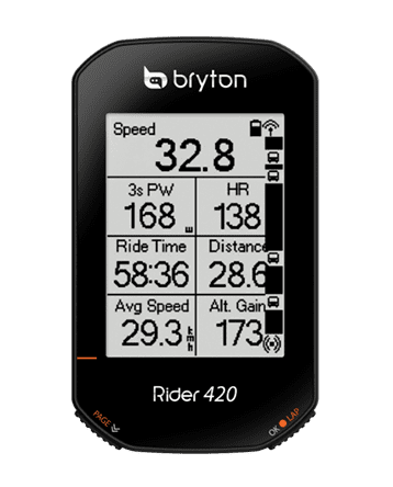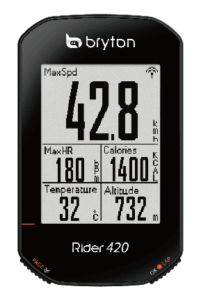 Rider 420 提供豐富的騎乘資料供您訓練參考。不僅簡單操作好上手,更支援高達 80+ 種數據包含時間、速度、距離、卡路里、踏頻、高度、心率和功率等。
