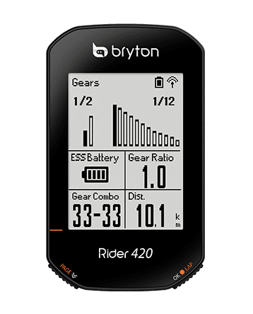 在騎乘頁面就能取得電子變速的資訊! Rider 420 支援Shimano’s Di2 EPS電子變速,不需探頭查看齒盤和飛輪,就能直接在車錶上觀看齒輪比、齒盤組合和電量等資訊,讓您掌握更全面的騎乘狀況,拿出更好的表現!