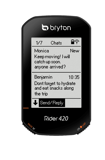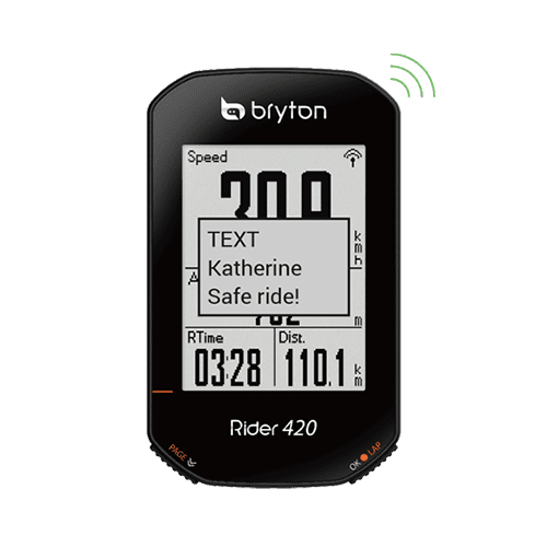 不需擔心騎乘時會漏掉重要電話和訊息,Rider 420 支援智慧通知功能,透過藍芽將車錶和您的手機配對後,就能在接收到來電、電子郵件和簡訊時,即時顯示通知。