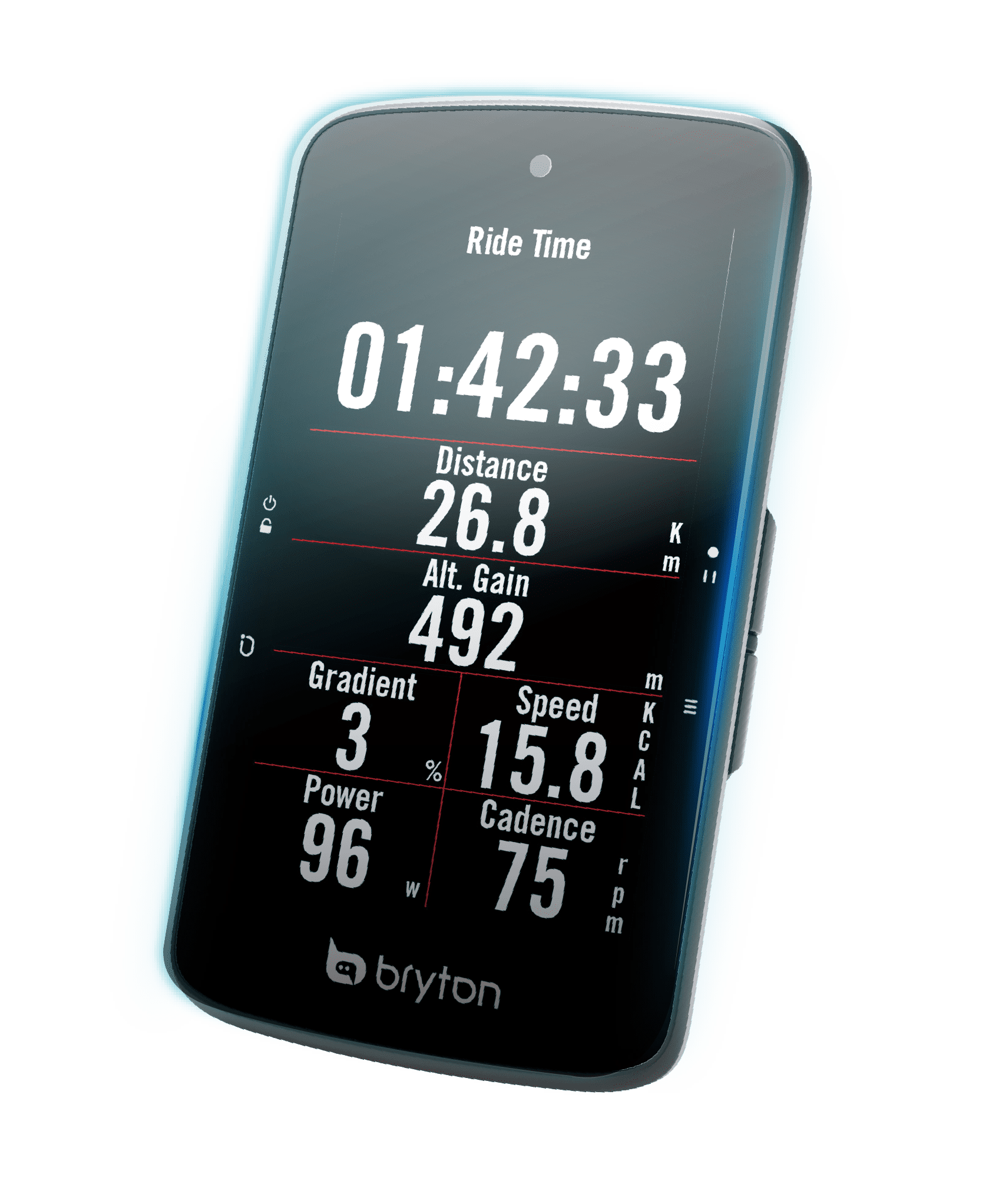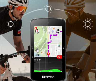 搭配3.4吋大尺寸螢幕,Rider S800利用MIP (Memory In Pixel)技術以及螢幕內反射層來大幅度優化碼錶在戶外的顯示清晰度。而寬幅的MIP顯示器與極窄的邊框提供了清晰、高對比且易讀的觀看體驗,造就了Bryton最頂級的旗艦機種,不需任何妥協即可享受清晰顯示。