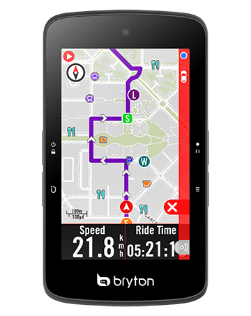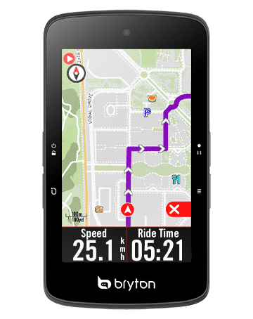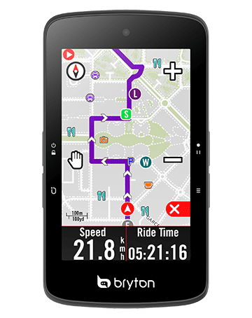 無論是要探索新的路線或是按規劃路徑騎乘,Rider S800都將是你的最佳夥伴!在路線引導時Rider S800可提供詳細的轉彎資訊,包含街道名稱、興趣點與坡頂(可利用Bryton Active自訂)、距離與方向等多種資訊都能在預載的OSM開放街圖上顯示。
