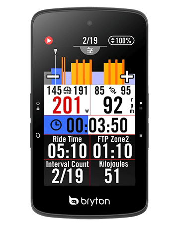 透過Bryton Active與Rider S800,使用者可快速建立或匯入結構化課表,訓練中會以圖像化顯示訓練步驟,並支援於裝置上操作的縮放功能,除此之外,在進行訓練時Rider S800也會顯示訓練進度條,對於專業訓練的全面支援將是騎士們進行功率訓練時的強大輔助。