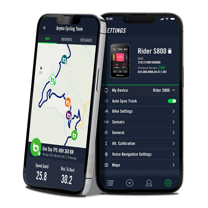 獨樂樂不如眾樂樂!透過Bryton Active App, 你將能夠選擇路線、邀請朋友加入團騎,並且在騎乘中實時更新所有成員的最新動態。每個團員的即時速度、相對距離都將個別顯示,亦可偵測是否有成員偏離路線或是失去訊號。