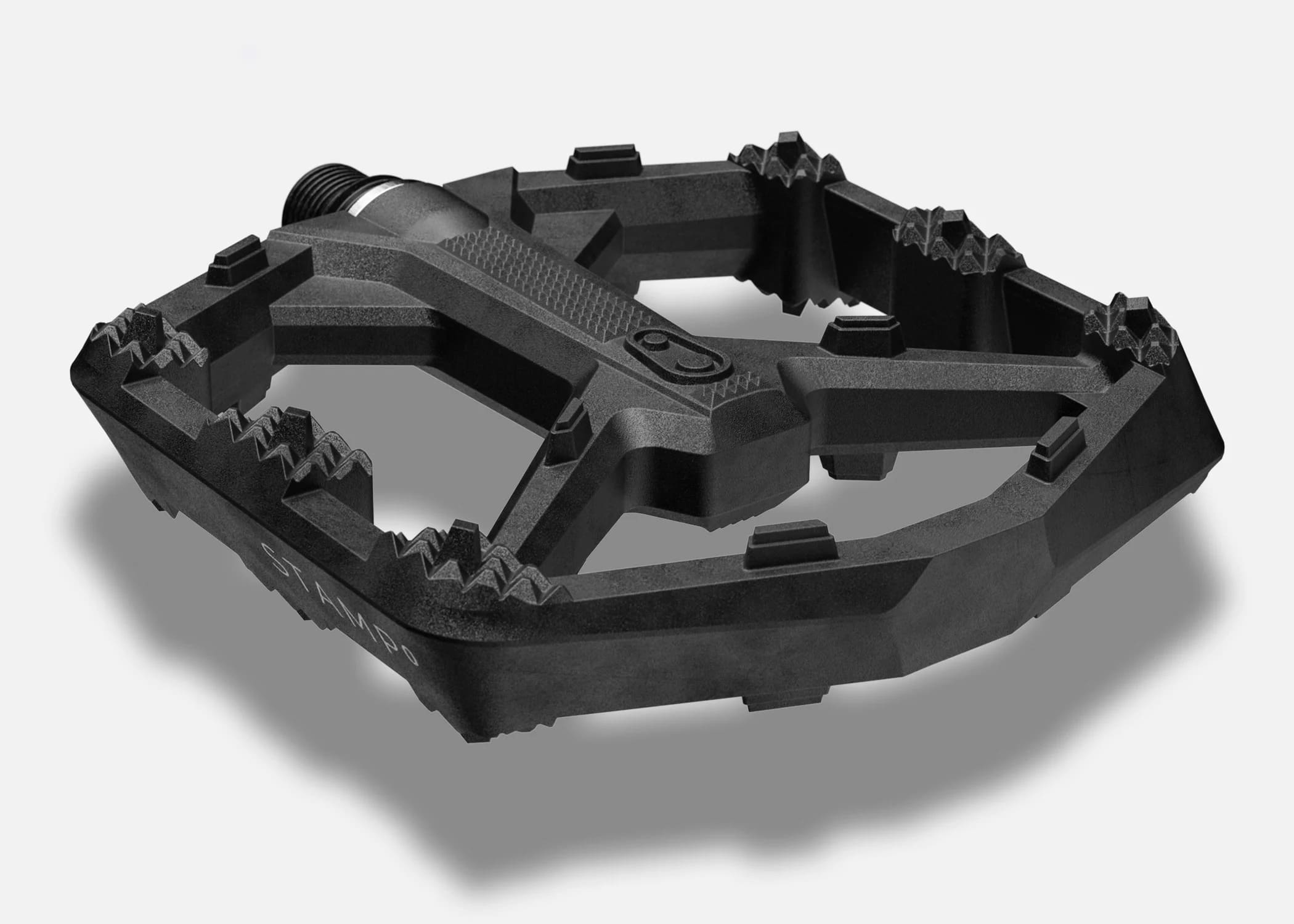 Stamp 0 採用耐用的複合材料踏板本體與成型防滑凸點設計,減少鋒利金屬針的威脅,為剛入門的騎士提供更安心、穩定的騎乘體驗。