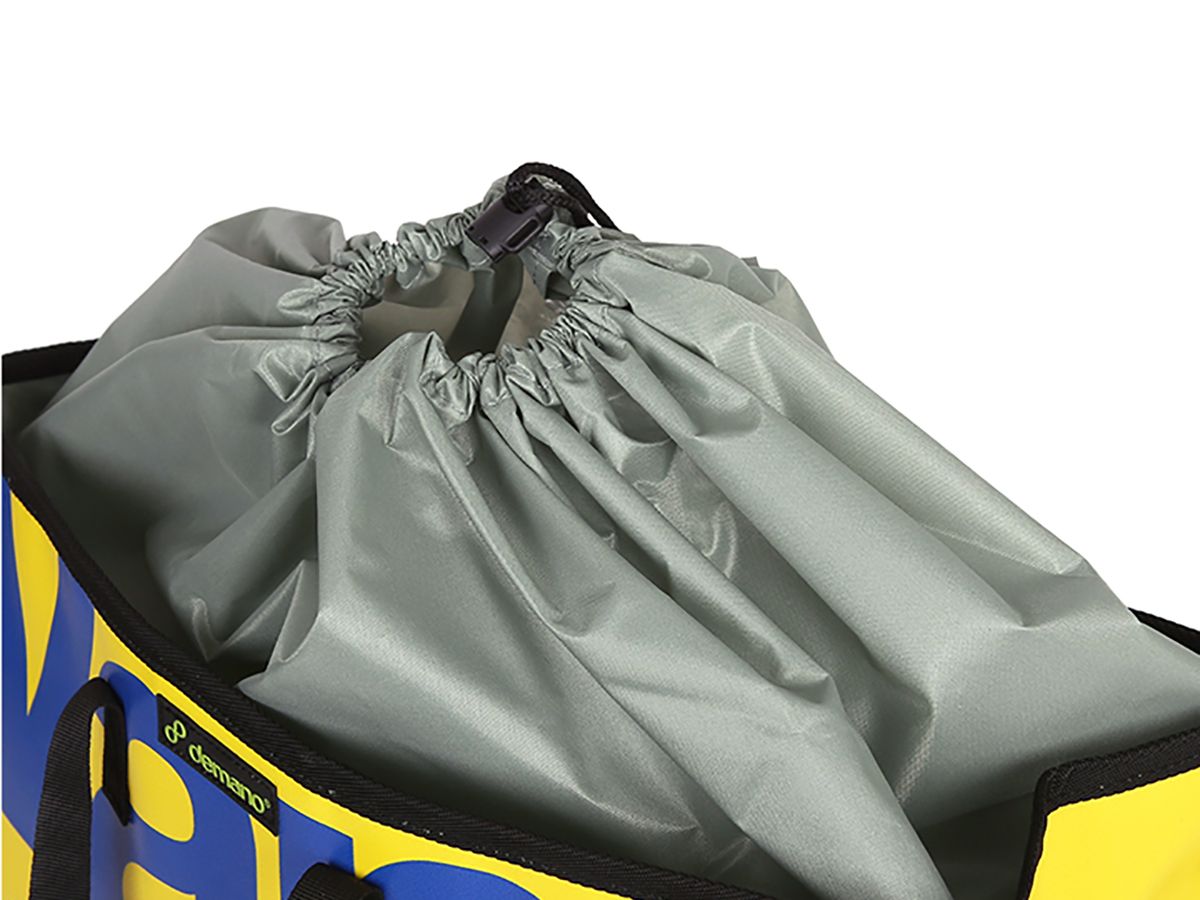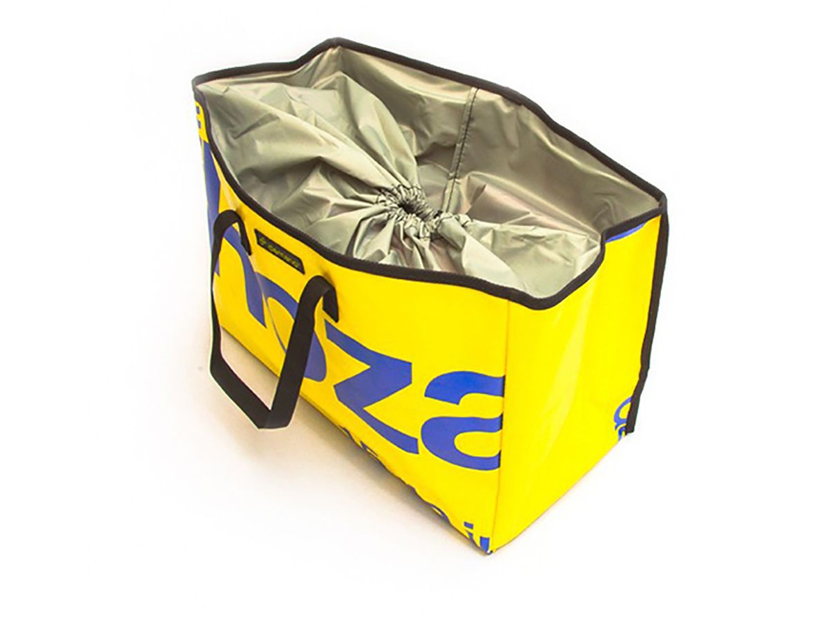 籃式 Miramar包的設計使您可以將它放在 Brompton 自行車前方。 頂部開口的設計使其成為自行車購物的理想選擇,包身採用防水尼龍面料,可保護您的個人物品免受雨水的侵害;內層束口袋設計,可以將您的所有物品固定。