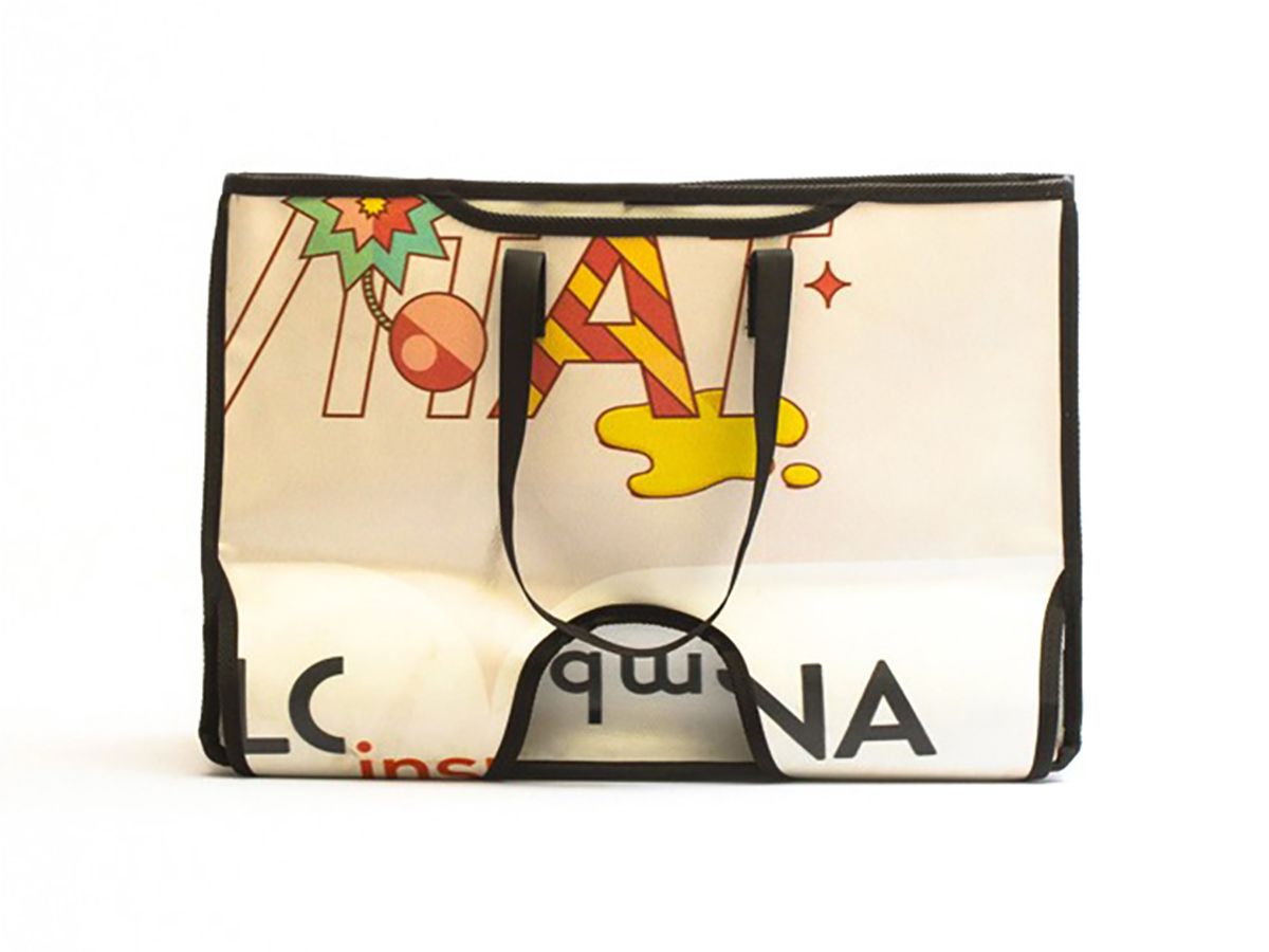 經過材料收集,對其進行清潔。我們將回收的原材料「廣告帆布」剝離它之前的用途,幫助它轉化為新的材料元素。