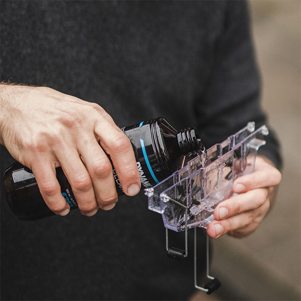 Dynamic Chain Cleaner 鏈條清潔劑的獨特配方基於兩種成分。可溶解油脂和其它污染物的脫脂劑。同時,鏈條清潔器會在傳動系統上留下一層防護膜,防止金屬零件在清潔後過於乾燥,使您的鏈條看起來像新的一樣。