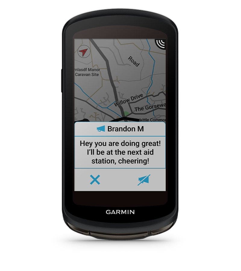 將 Edge 與相容的 inReach 裝置配對,無論騎到哪,都能與外界保持聯繫。你可以閱讀並回覆簡訊、分享旅程資料並啟動互動求救功能。