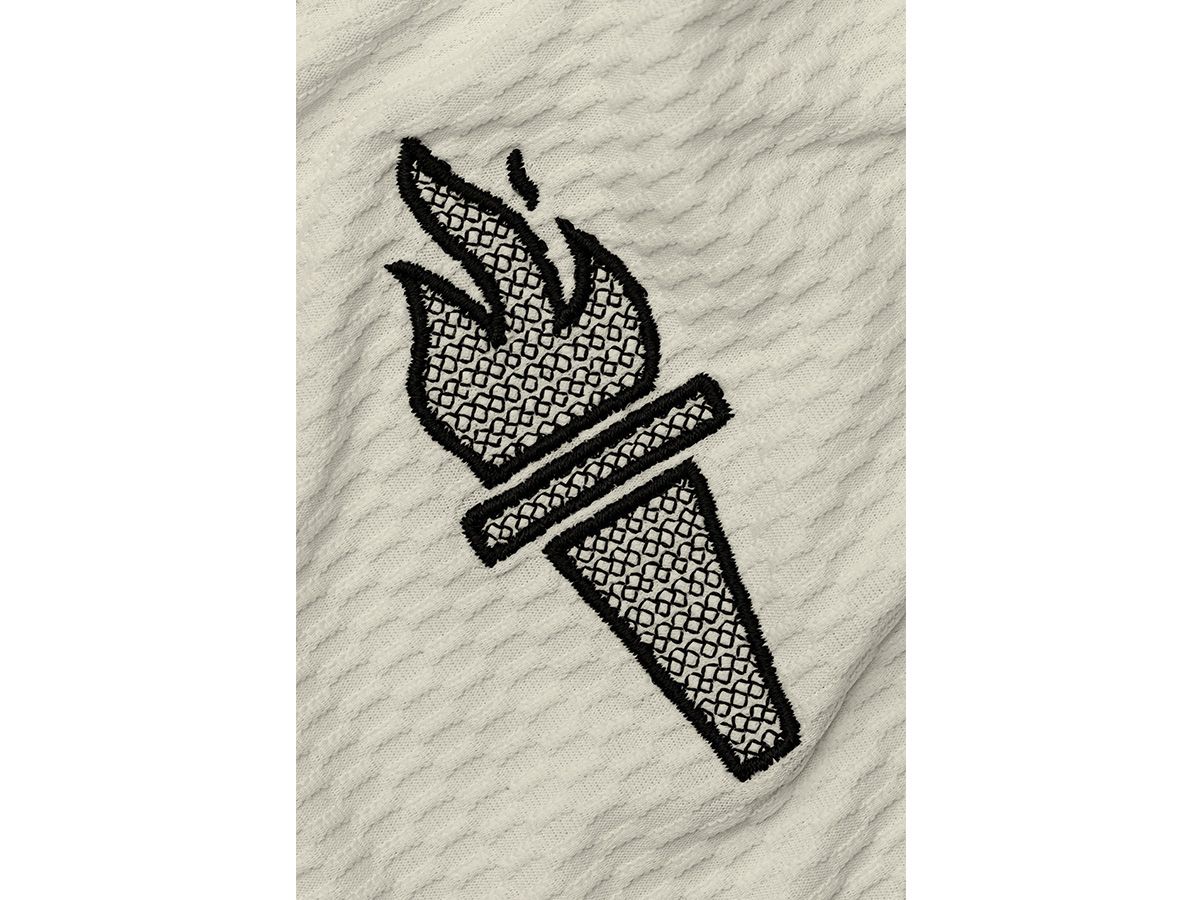 系列採用刺繡臂章,並在上背部中央飾有 Keep The Faith 火炬圖案。胸前繡有 Internationalist 字樣。