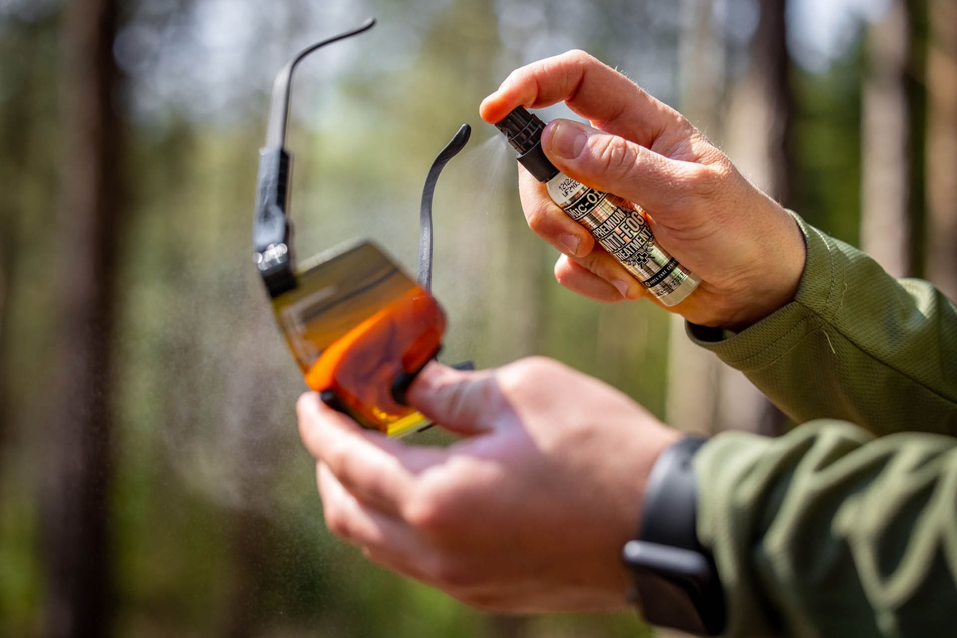 - 請先確認鏡片為乾淨無垢狀態,搖晃瓶身後噴灑微量於鏡面上再以超細超細纖維擦車布/乾衛生紙小力擦拭