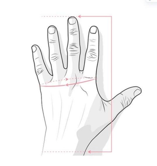 | 手掌長(公分) | <16.5 | 16.5-19 | 19-20.5 | 20.5-23 | 23-25.5 | 25.5+ |