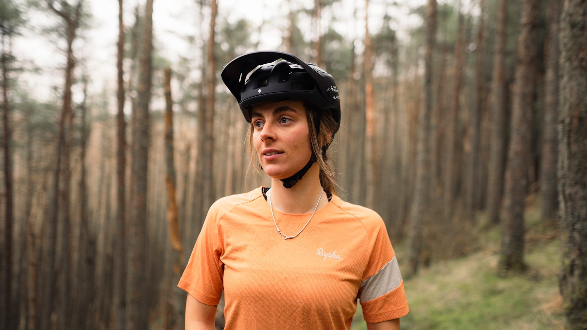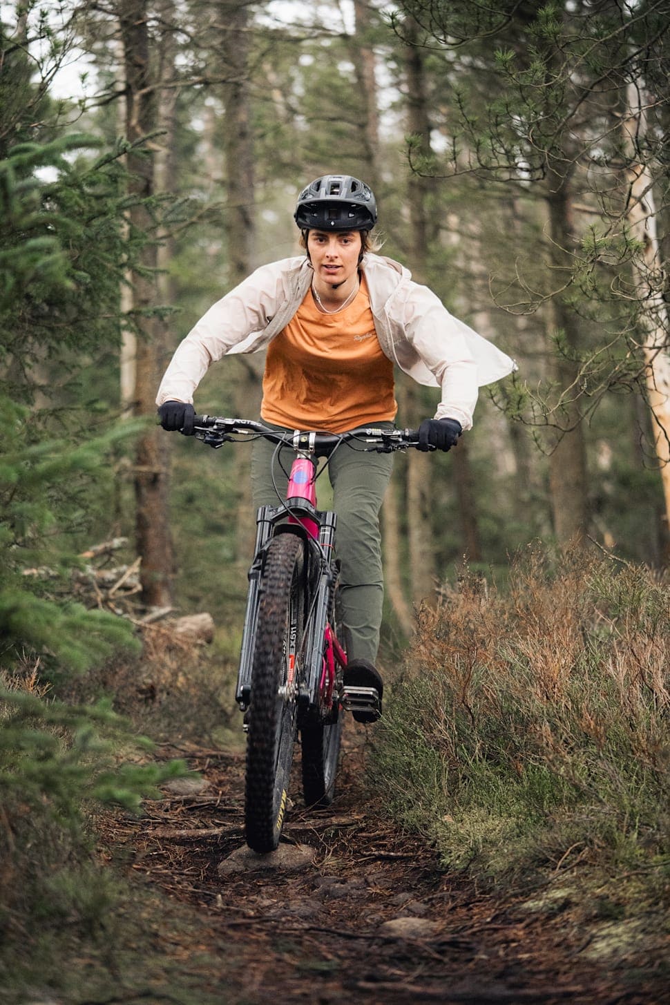 一件專為登山車騎乘所設計的輕盈、透氣T恤,採用再生材質製成。
