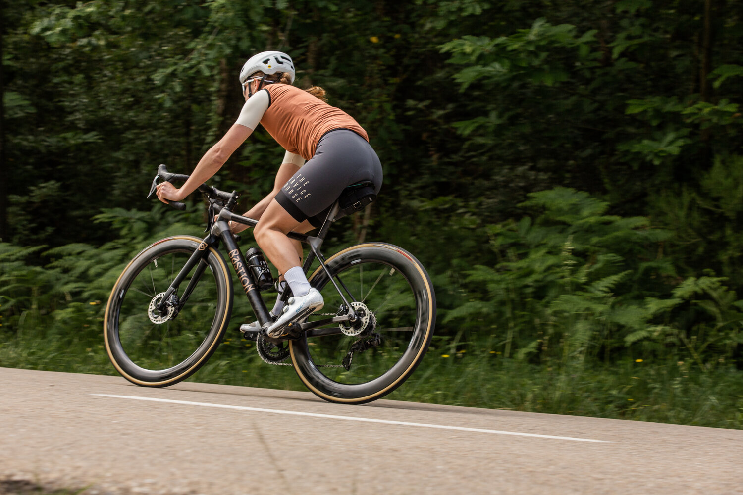 *獨家開發具有增強透氣性的單密度泡棉層麂皮褲墊(女性連身車褲使用女性專用形狀)