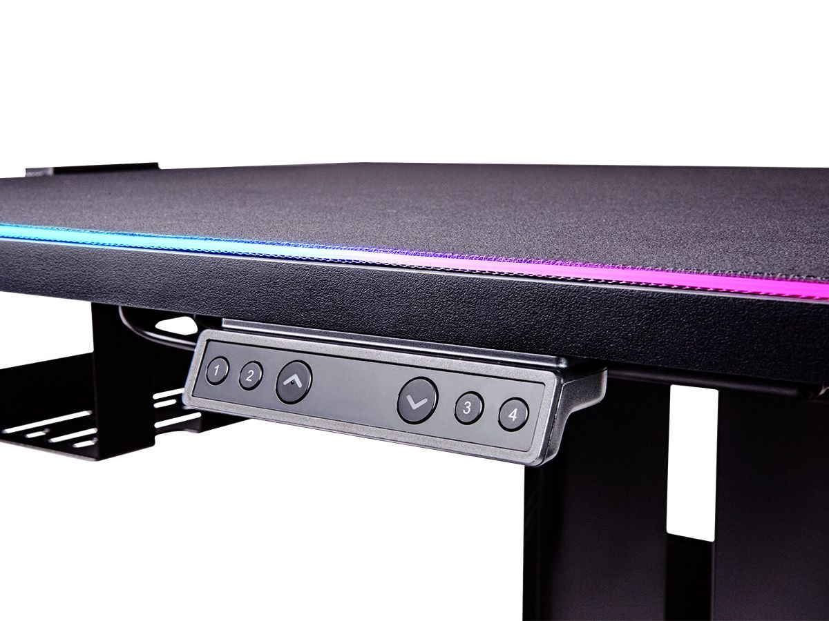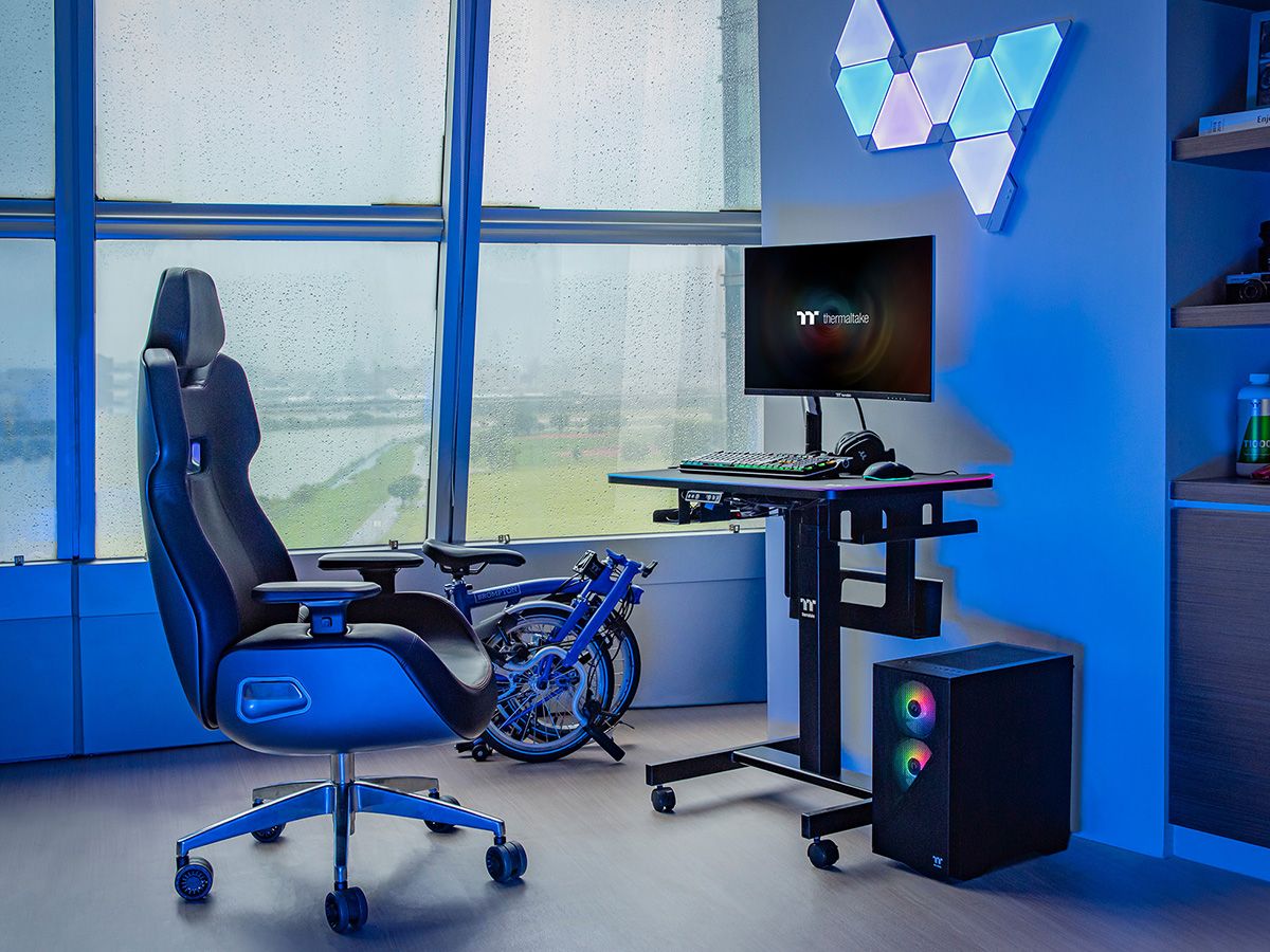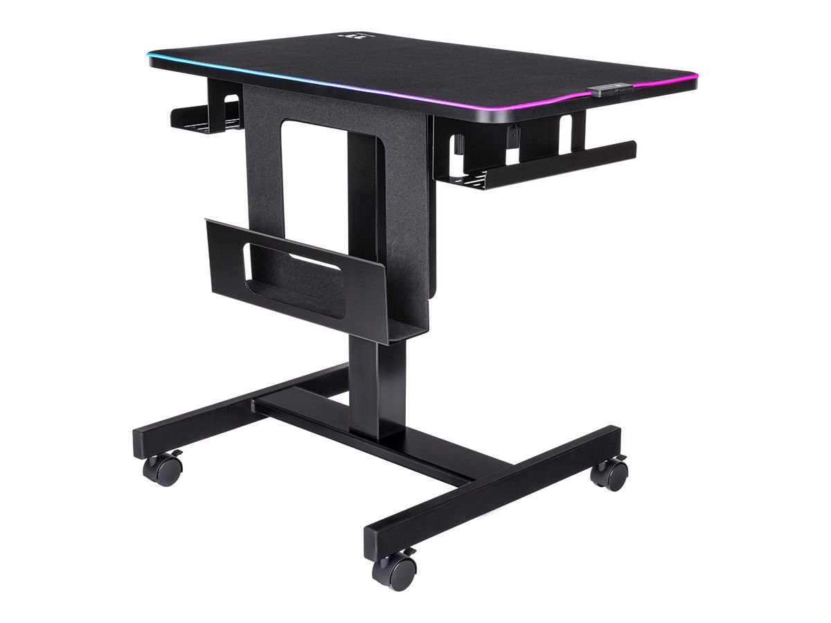 CYCLEDESK 100 智能電競桌配有 RGB 燈條。 透過 Thermaltake RGB DESK行動App或 iTAKE 軟體,使用者可以自定義、控制和同步燈光效果。 更進一步地,在 4 種不同的燈光效果以及 5 種亮度和燈效速度之間進行選擇與切換