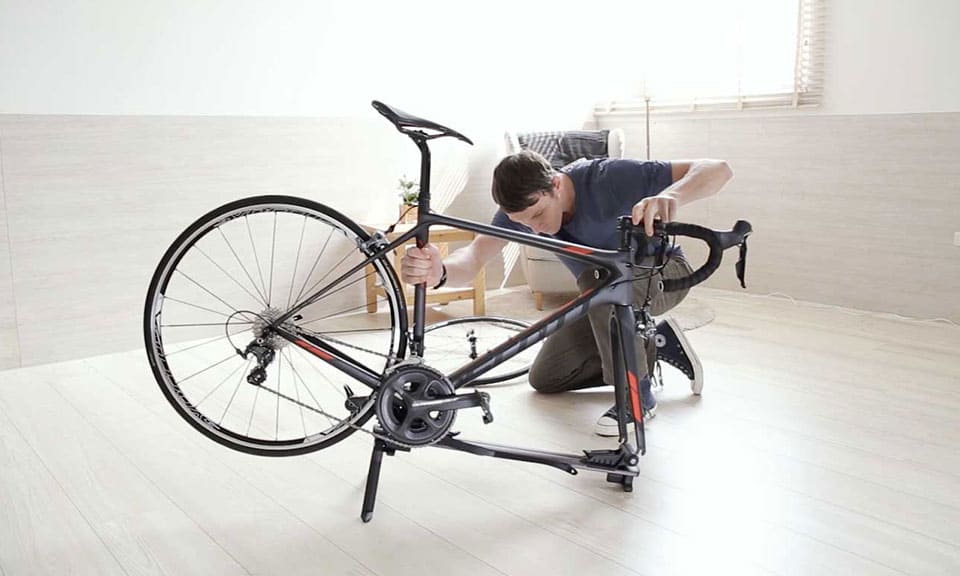 車架穩定器展開後就是專業立車架,幫助車輛組裝或調整更加便利。