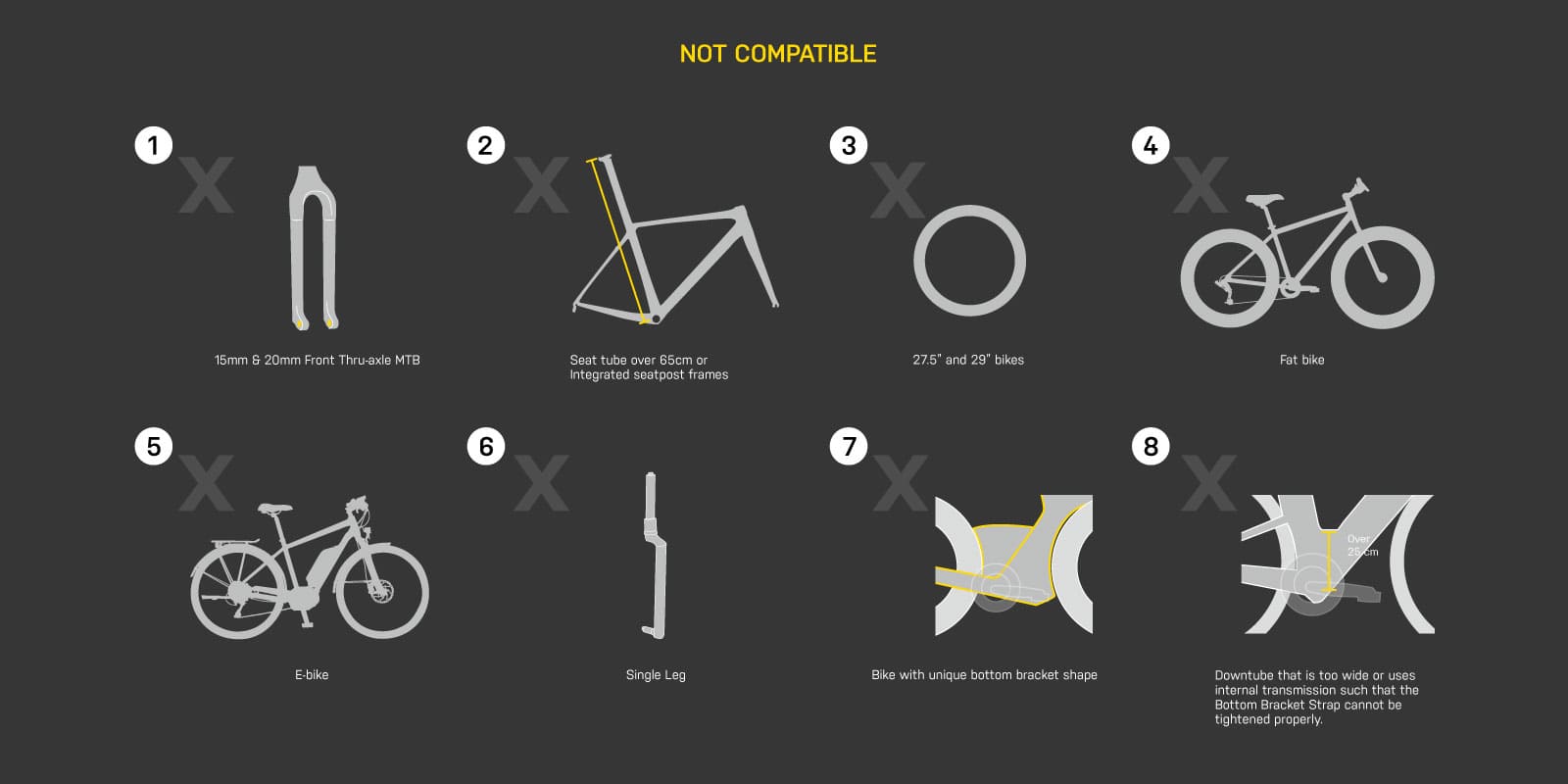 適用26吋登山車、700c 公路車,軸距最寬適用112cm。不適用27.5 & 29 吋登山車