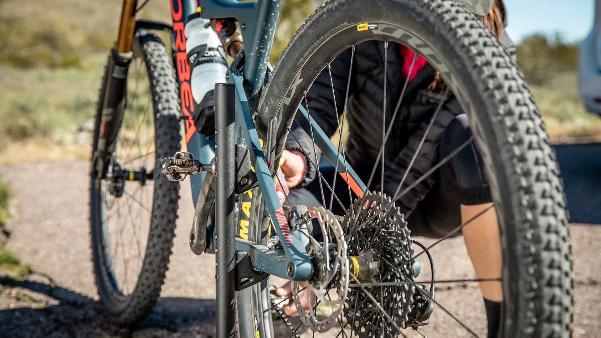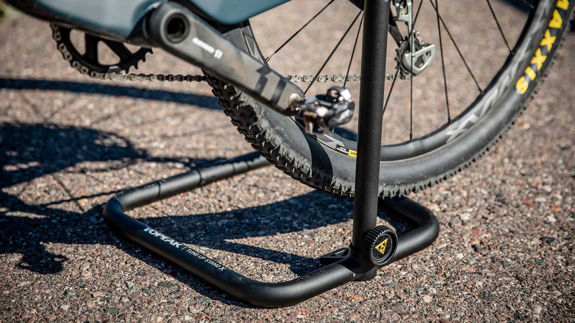 完美的行動立車架解決方案,適用各種車款和各種環境都能穩定陳列自行車或者進行機械檢修。TUNE-UP STAND X 更提供平整摺疊收納設計讓補給車或居家收納更為節省空間。