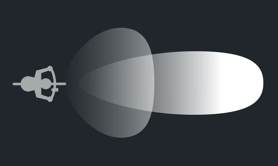 全新多焦點光學設計,讓光束在遠方照明時也在同時於前輪兩側產生光翼。同時間照亮遠方與前輪路況,光線不足情況下前方道路可以獲得最大值照明效果,500流明照度輸出即使在無光環境也可清楚照亮前方路況。