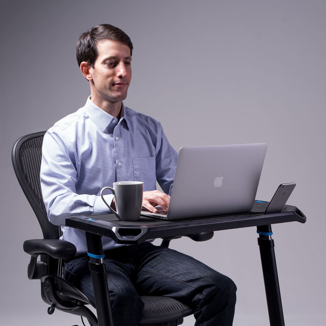 只需要按下桌面兩側按鈕,就能夠快速調整至每個人適合的高度。